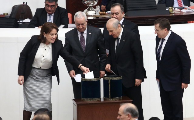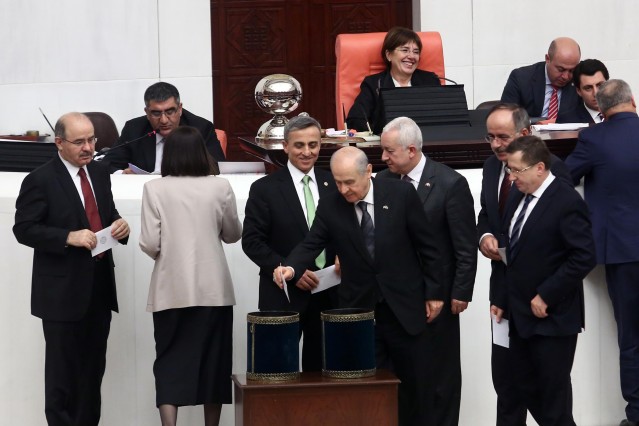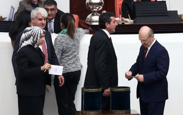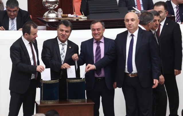 Meclis'te vekiller oylarını açılan paravanlar ardında kullandı. AK Parti ve muhalefet partilerinden vekiller alfabetik sıralamaya göre çağrıldı ve kendilerine verilen 3 pusulayla birlikte perdelerin arkasına geçip oylarını verdi. Meclis'te o onlar kameralara işte böyle yansıdı...