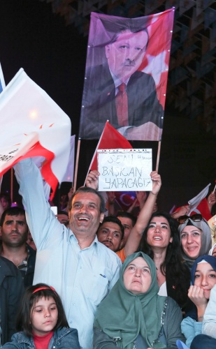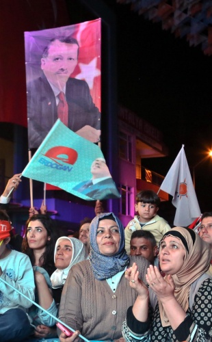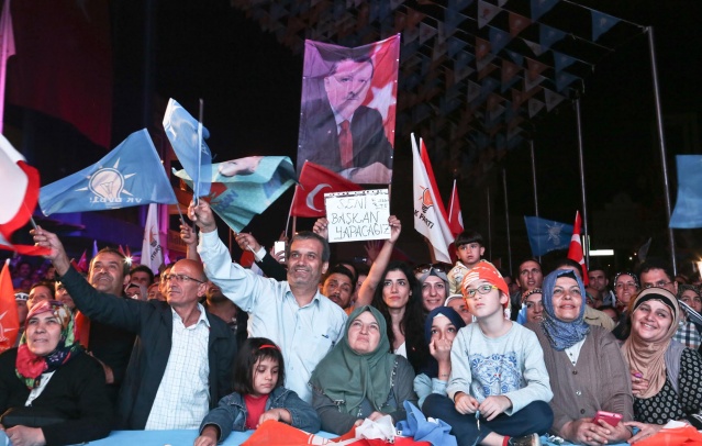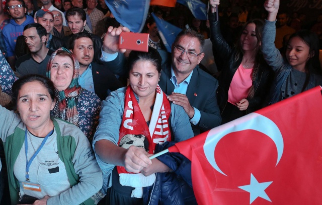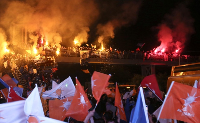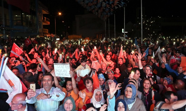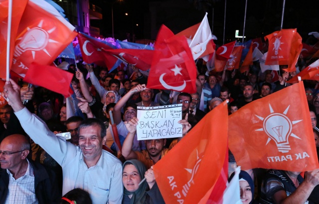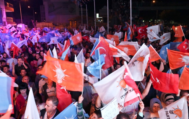 İl Başkanı Rıza Sümer başta olmak üzere milletvekilleri ve adayları sonuçları İl Seçim Kurulu'ndan takip ederken, partililer ise il başkanlığı önünde kurulan dev ekrandan takip etti. Açıklanan her sonuçla birlikte parti önünde coşku tavan yaparken, Gülşen'in 'Yavrum kaldır kollarını, teslim ol etrafın sarılı' sözlerinin yer aldığı 'Bangır Bangır' şarkısı partililerin sevincine eşlik etti.