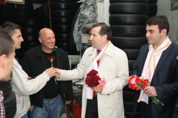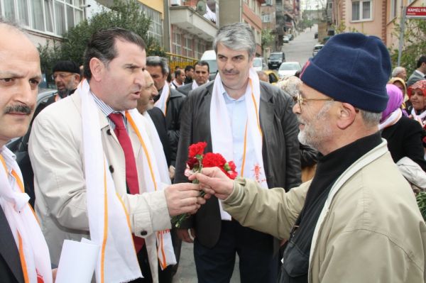 Eyüp’ü tüm caddeleri, sokaklarıyla gezerek, kadın, erkek, çocuk, yaşlı herkesin hatırını soran, karanfiller dağıtarak kardeşlik, birlik, beraberlik, hoşgörü mesajları veren milletvekili adaylarına halk da çok büyük ilgi gösteriyor.