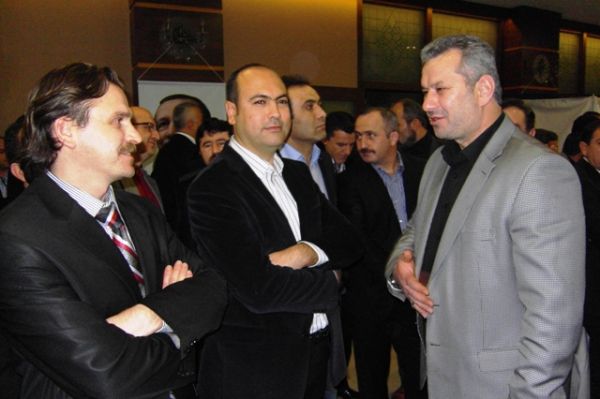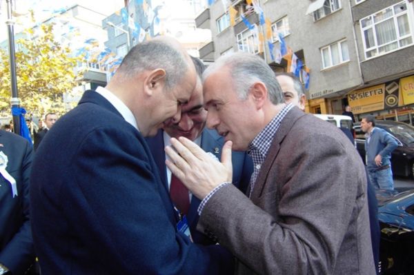 Ak Parti İl Başkanı Aziz Babuşçu, Belediye Başkanı Dr. Erhan Erol ve İlçe Başkmını İsmail Ergüneş, kafa kafaya kısa süre sohbet etti.