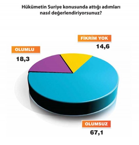 Bu düşüşte partinin son zamanlardaki Suriye politikasının etkili olduğu ön görülüyor çünkü 'Hükümetin Suriye konusunda attığı adımları nasıl değrelendiriyorsunuz?' sorusuna ankete katılanların yüzde 67'si olumsuz olarak yanıt vermiş.