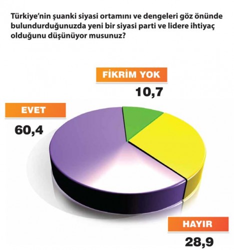 Türkiye'nin şuanki siyasi durumu değerlendirildiğinde yeni bir lideri ihtiyaç duyulduğunu düşünüyor musunuz sorununa yüzde 60.4 evet cevabınnı verdi