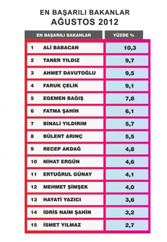 En başarılı bakanlar listesinde Ali Babacan ilk sırada yer aldı