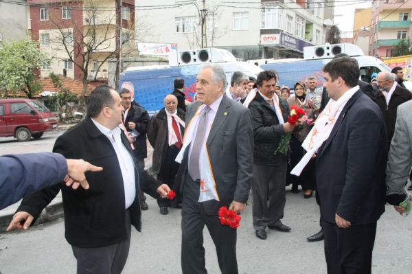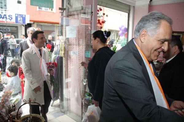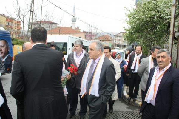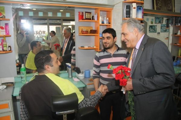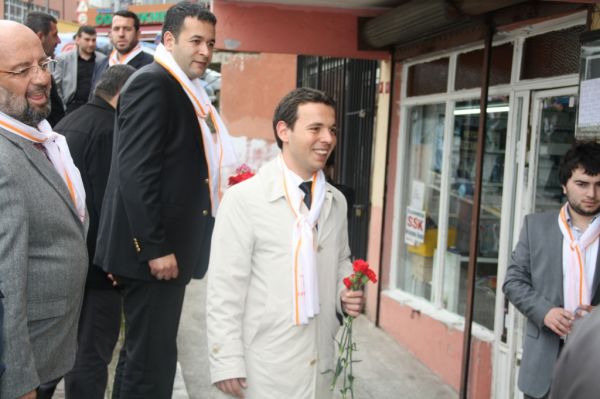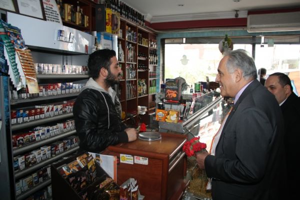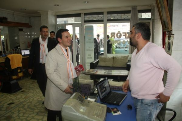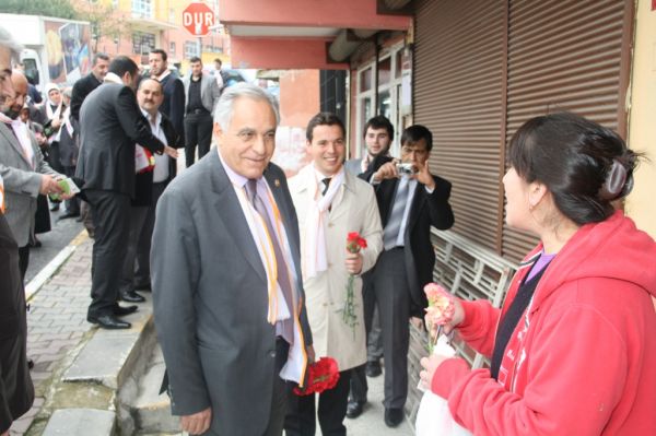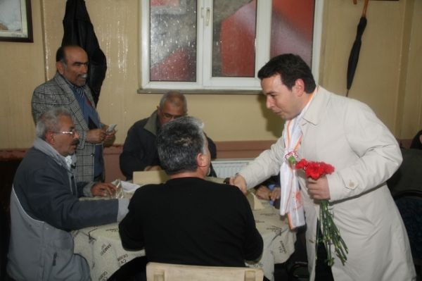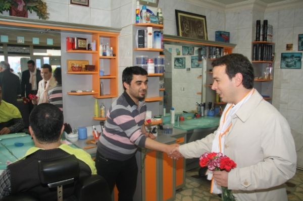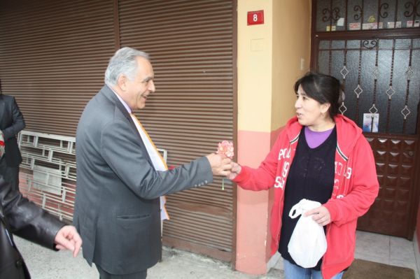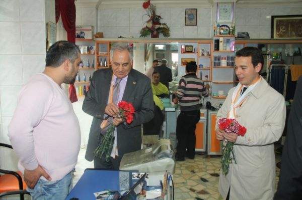 Güzeltepelilere karanfiller dağıtan AK partililer “Sevgi, barış, hoşgörü” duygularıyla millete hizmet için geceli gündüzlü çalışmaya devam edecekleri mesajları verdiler.