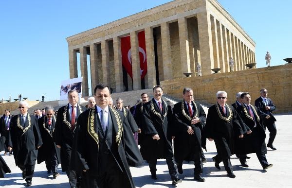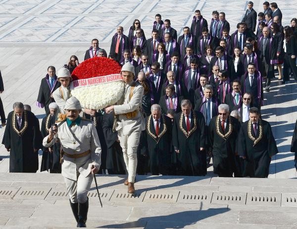 ANAYASA Mahkemesi Başkanı Zühtü Arslan ile üyeler ve raportörler, Yüksek Mahkemenin kuruluşunun 53'üncü yılı dolayısıyla Anıtkabir'i ziyaret etti.