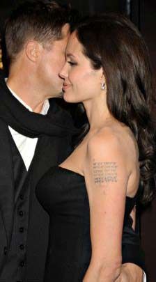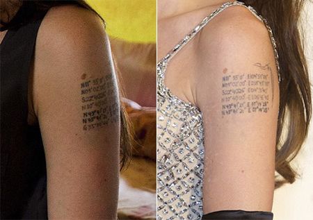 Vücudunun çeşitli yerlerinde 13 dövmesi olan Angelina Jolie’nin kolunda görülen yeni dövmesinin sırrı çözüldü.