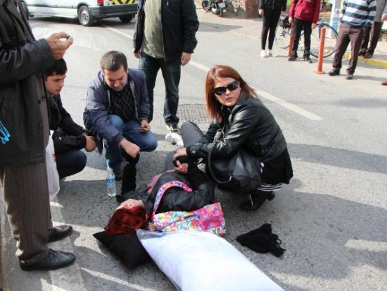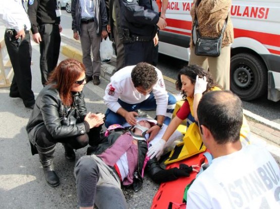 Üsküdar'da kadın sürücü, kullandığı motosikletle aniden fren yapınca hakimiyetini kaybederek kaza yaptı. Motosikletten düşerek yaralanan sürücüye ilk müdahale çevreden yardıma gelen vatandaşlar tarafından yapılırken bir kadın yaralı sürücünün elini tutarak ambulans gelene kadar bırakmadı.