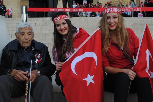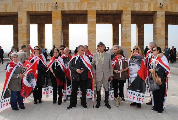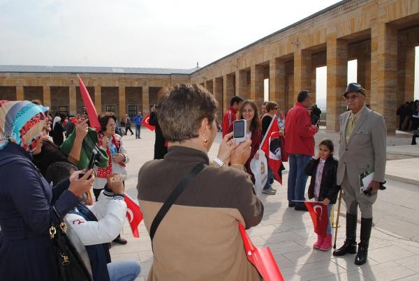 Cumhuriyet'in 91'inci kuruluş yıldönümü nedeniyle Anıtkabir'e yürüyen binlerce vatandaşa motosikletli grup da eşlik ederek destek verdi. Anıtkabir'e süvari elbisesi ile gelen 94 yaşındaki Genç Ali Kılıç ile birlikte çok sayıda vatandaş, fotoğraf çektirmeyi ihmal etmediler.