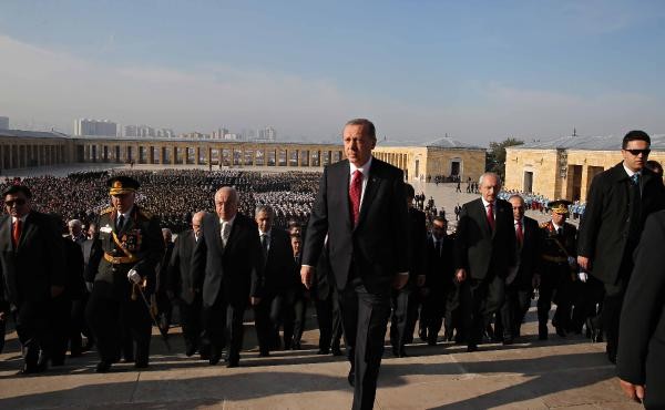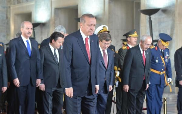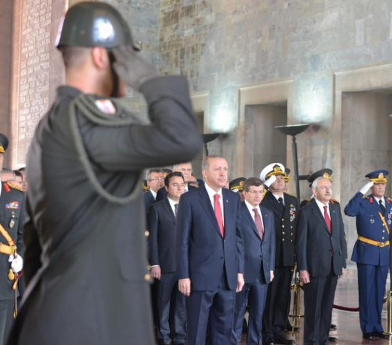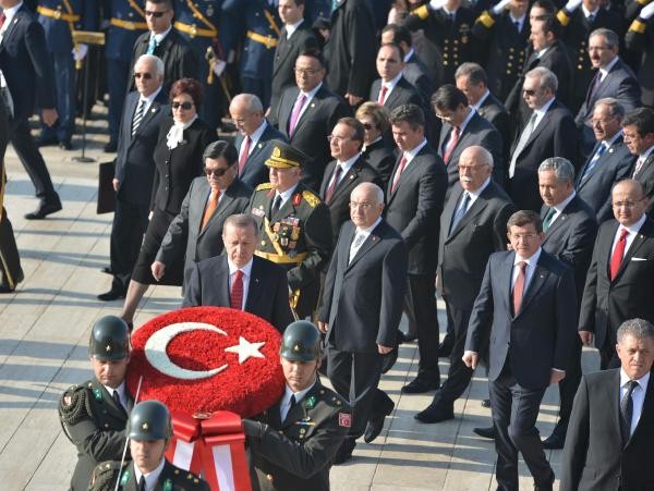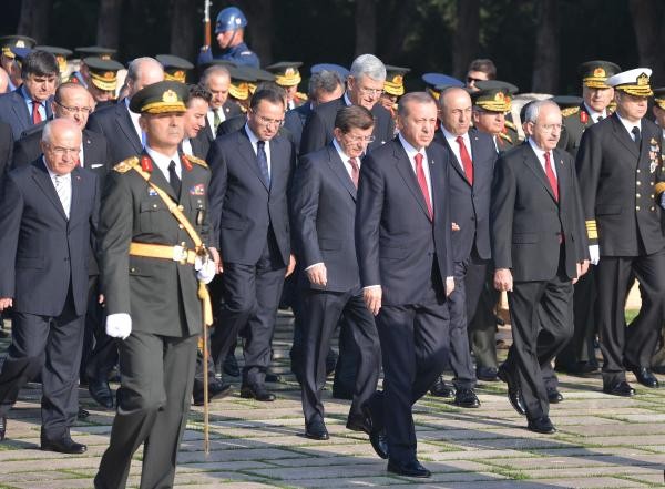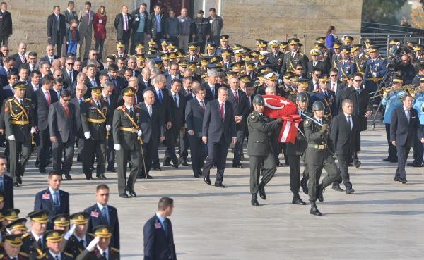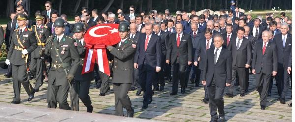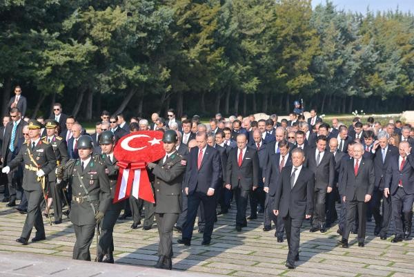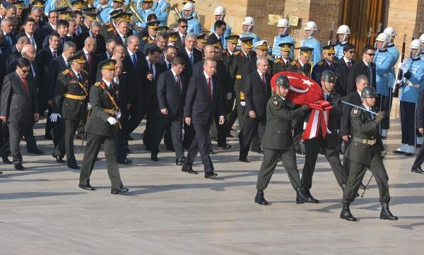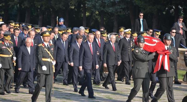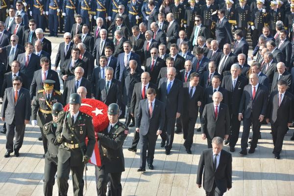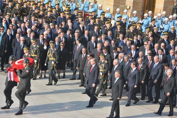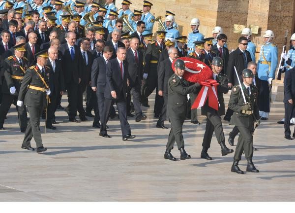 29 Ekim Cumhuriyet Bayramı etkinlikleri ilk olarak Anıtkabir'de saat 08.45'de Cumhurbaşkanı Recep Tayyip Erdoğan, TBMM Başkanı Cemil Çiçek, Başbakan Ahmet Davutoğlu, Anayasa Mahkemesi Başkanı Haşim Kılıç, CHP Genel Başkanı Kemal Kılıçdaroğlu, MHP Genel Başkanı Deylet Bahçeli, Genel Kurmay Başkanı Necdet Özel, Başbakan yardımcıları, bakanlar, üst düzey askerler, yargı mensuplarının Aslanlı yoldan yürüyüşle başladı.