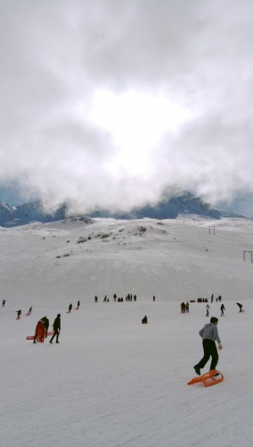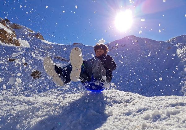 ANTALYA'ya 37 kilometre uzaklıktaki Saklıkent Kayak Merkezi, haftanın 7 günü kar keyfi yapmak isteyenleri ağırlıyor. Kar kalınlığının 2 metreye ulaştığı merkez, profesyonel kayakçıların yanı sıra çocukları da ağırlıyor. Çocuklar, kızaklarıyla keyifli anlar yaşıyor.