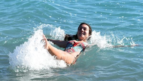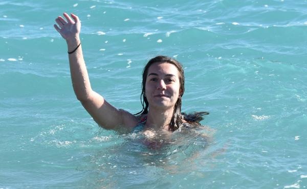 Yılbaşı tatili için Antalya'yı tercih ettiğini anlatan Bahar Aydın, "Yeni yılın ilk gününde kar manzaralı dağlara karşı denizde yüzmek çok keyifli. 2018 yılı hep böyle güzel geçsin" dedi.