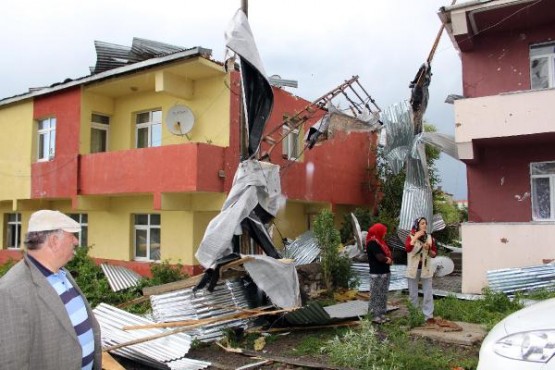 Ardahan'da bugün öğleden sonra başlayan sağanak yağmurun ardından Yeni Mahalle ve Karagöl Mahallelerinde hortum kendini gösterdi. Hortumun etkisiyle çok sayıda binanın çatısı uçtu, evlerin camları kırıldı.