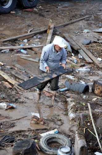 Adem GÜNGÖR/HOPA (Artvin), (DHA)- ARTVİN’in Hopa İlçesi'nde 8 kişinin yaşamını yitirdiği, 3 kişinin de kaybolduğu sel ve heyelan felaketinin yaralarının sarılmasına çalışılıyor. Yukarı Kuledibi Mahallesi’nde bir kişinin hayatını kaybettiği 4 katlı ev ve çevresinde enkaz kaldırma çalışmaları sürerken, Yoldere Köyü’nde de toprak altında kalan evde hayatını kaybeden 3 kişi toprağa verilirken gözyaşı sel oldu. Bu arada kaybolan 3 kişi de aranıyor.