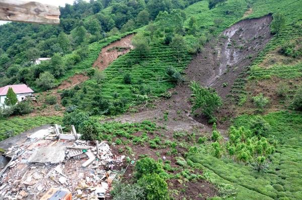 "Olay saat 23.30 sıralarında oldu. Kuvvetli yağmur yağıyordu, ırmak tamamen sularla doldu taştı. Çay bahçesinin başından heyelanın gelmesiyle bir saniye içerisinde 4 katlı ev yerle bir oldu. Evde bir kişi vardı. Benim de ahırım yıkıldı, hayvanlarım ahırda kaldı. Telef olmaktan son anda kurtardık. Ölen teyzemize Allah rahmet eylesin, çok üzüldük. Binanın yıkılışına tanık oldum. Bir saniyede ev yıkıldı. Arama kurtarma ekipleri geldi ve evdeki teyzemizin cesedini çıkardı."