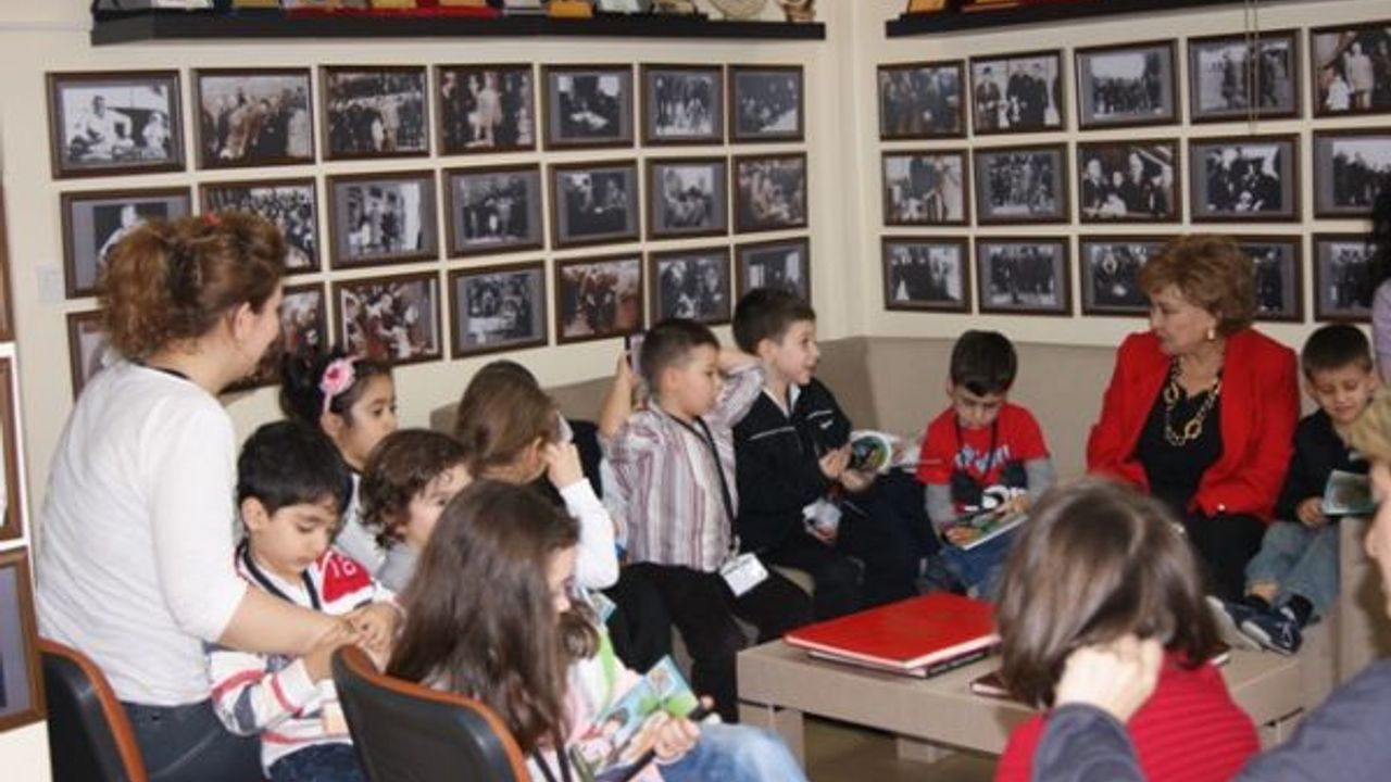 Ülkü Adatepe Atabek Koleji öğrencilerine Atamızla çektirdiği fotoğrafları gösterdi ve Atatürk'le ilgili anılarını anlattı.