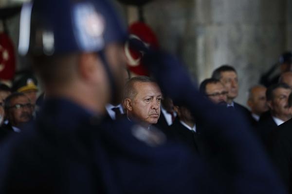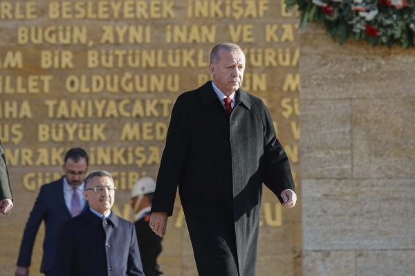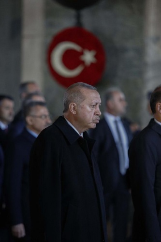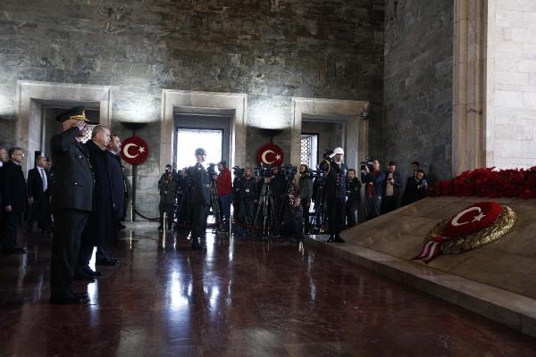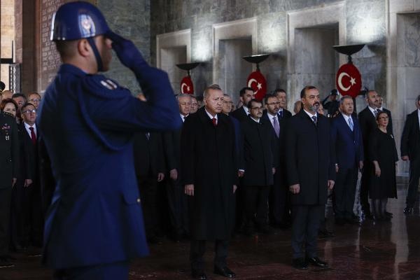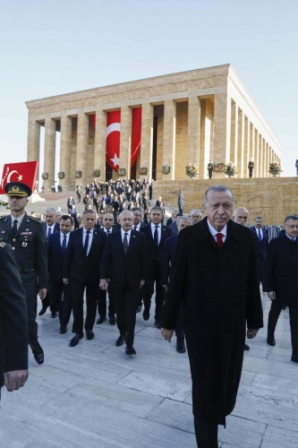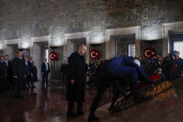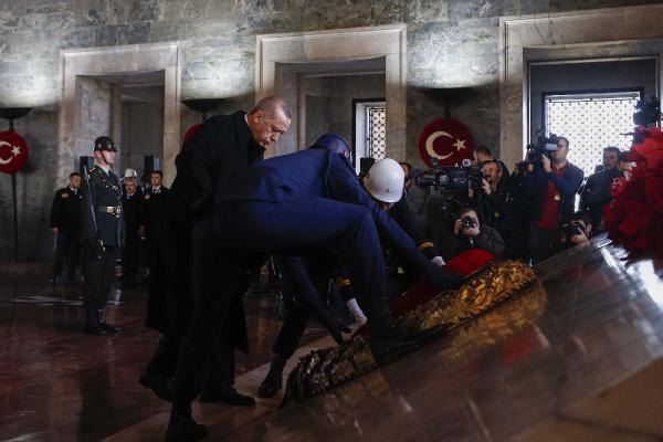 Cumhurbaşkanı Erdoğan ve beraberindekiler Aslanlı Yol'dan yürüyerek Atatürk'ün mozolesine geldi. Cumhurbaşkanı Erdoğan, üzerinde ay yıldız bulunan çelengi Atatürk'ün mozolesine bıraktıktan sonra saygı duruşunda bulunularak İstiklal Marşı okundu.
