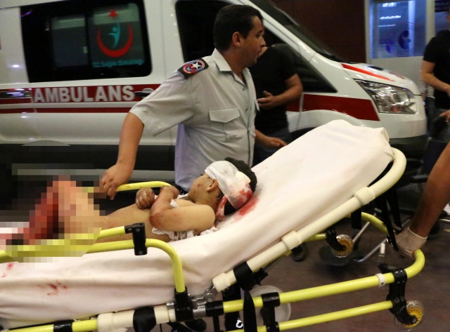 ) ATATÜRK Havalimanı dış hatlar terminalinde patlama yaşandı. Patlamada yaralananlar ambulansla Bakırköy Devlet Hastanesi'ne götürülüyor. Terör saldırılarının yaşandığı noktada ambulanslar bekletiliyor. Görüntülerde 1 den fazla cansız bedenin olduğu görülüyor.