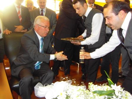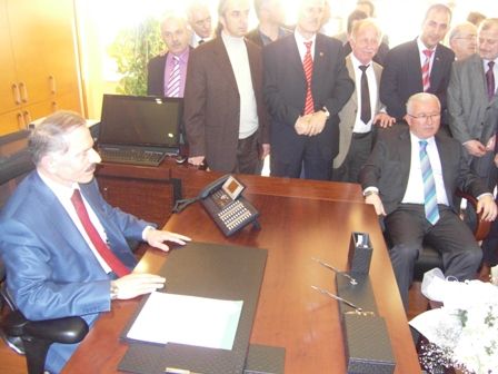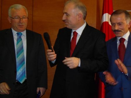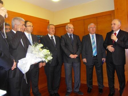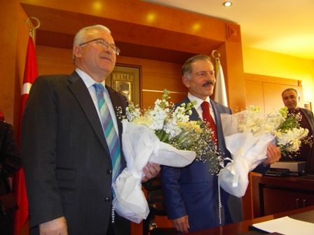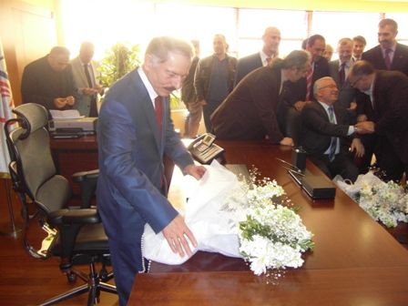 Ak Parti İl Başkanı Aziz Babuşçu devir teslim törenine katılarak Hem Hüseyin Bürge'nin Milletvekili adaylığını, hem de Atilla Aydıner'in belediye başkanlık görevini kutladı.