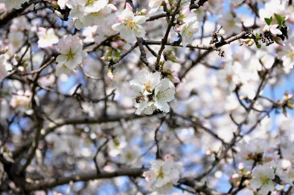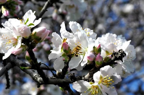 AYDIN merkezi ile Manisa'nın Turgutlu İlçesi'nde güneşin yüzünü göstermesiyle birlikte badem ve erik ağaçları çiçek verdi. Kır çiçeklerinin boy göstermesiyle yeşil alanlar renklendi.
