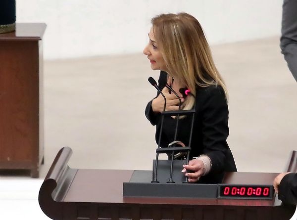 ANKARA Bağımsız Milletvekili Aylin Nazlıaka, TBMM Genel Kurulu'nda anayasa değişikliği teklifinin ikinci tur görüşmeleri yapılırken, kendisini Meclis kürsüsünde mikrofona kelepçeledi.