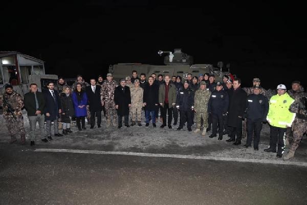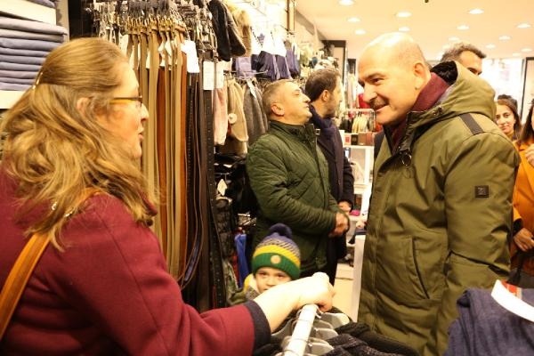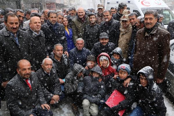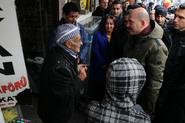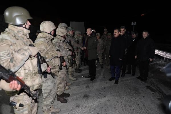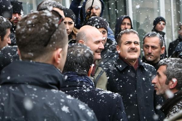 İÇİŞLERİ Bakanı Süleyman Soylu, dün gece Hakkari'nin Geçitli köyündeki jandarma karakolunda görev yapan askerleri ziyaretinin ardından, bugün da lapa lapa yağan kar yağışı altında kent merkezinde esnaf ziyareti gerçekleştirdi.