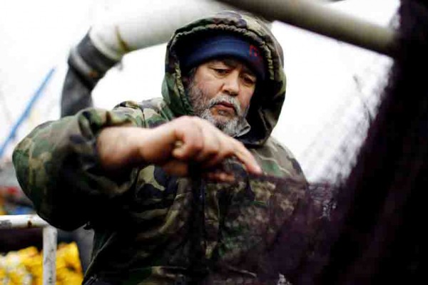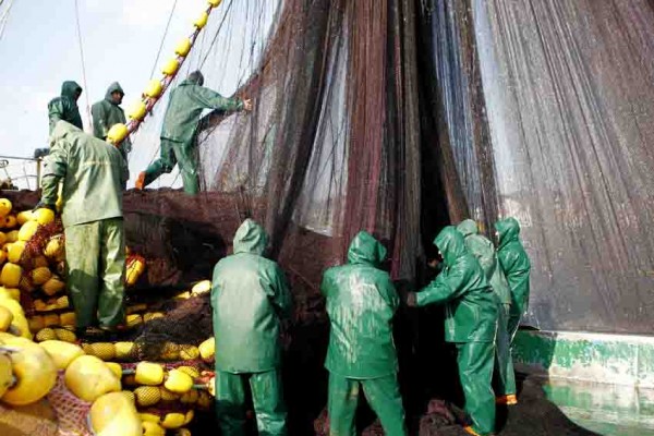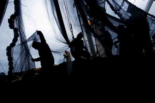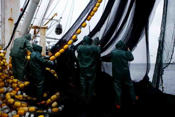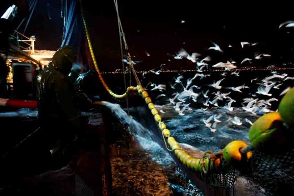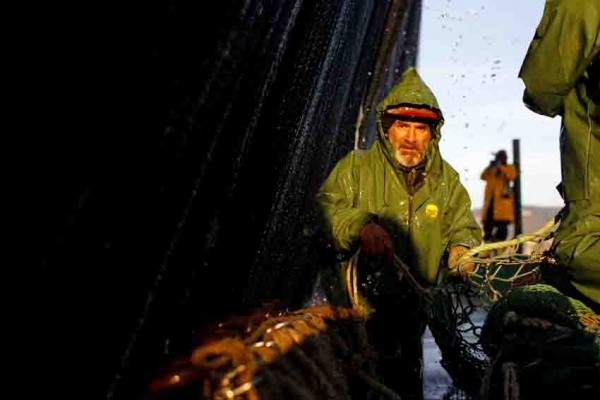 Sonra yine kıç tarafta bulunan vincin ucundaki makara ile ağ yavaş yavaş toplanıyor. Tayfaların çoğu kıç tarafta toplanan ağı istifliyor. Zifiri karanlık ve -7 dereceye varan soğuk hava tayfaların işini oldukça zorlaştırıyor. Islak ağ makaradan çekildikçe, rüzgar ağın üzerindeki deniz suyunu tayfaların üzerine savuruyor. Balık ağının büyük bir kısmı toplanınca, ağın suyun içindeki küçük bir bölümünde sıkışan balık bir pompa ile geminin orta kısmında bulunan havuzlara aktarılıyor.