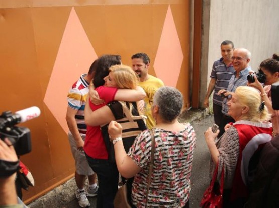 Yaklaşık 21 aydır hapis yatan Berna Dönmez’i cezaevi önünde eşi Zeki Dönmez ile yakınları ve dostları karşıladı. Cezaevinden çıkan Dönmez, kendisini bekleyen yakınlarıyla tek tek kucaklaştı. Berna Dönmez, yakınlarının ısrarı üzerine eşiyle tekrar kucaklaşırken, çevrede bulunanlar tarafından alkışlandı.