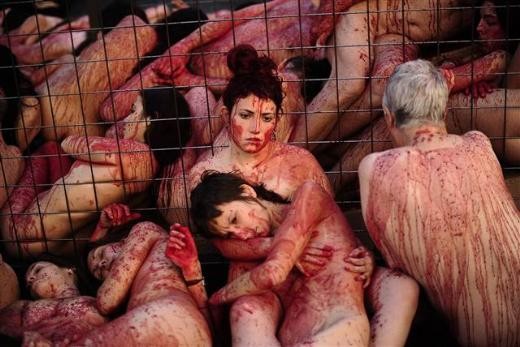 İspanya’nın Barcelona kentinde hayvan haklarını savunan ‘Anima Naturalis’ grubu ilginç bir eyleme imza attı.