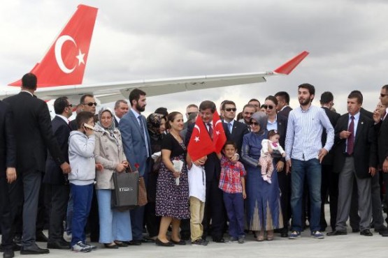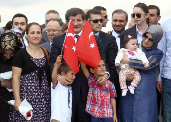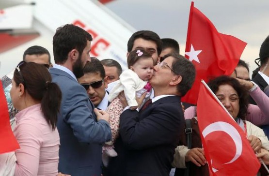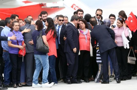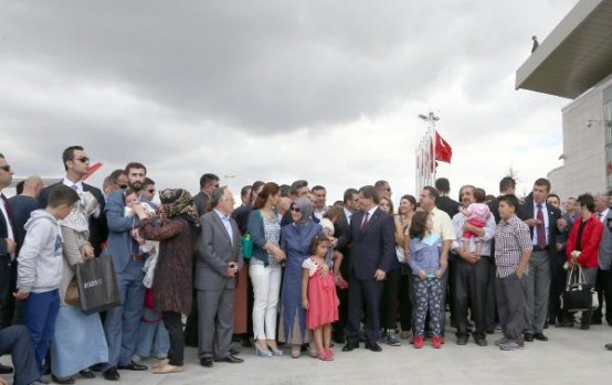 onuşmasında rehinelerin Türkiye'ye getirilmesi için 'Şimdi şükür zamanı' diyen Davutoğlu, "Bugün bir bayram günüdür. Sadece Musul'dan gelen değerli kardeşlerimiz ve onların aileleri için değil. Hakkari'den Edirne'ye Artvin'den Muğla'ya bütün bir milletimiz için bayram günüdür. 3 ayı aşkın bir zamandır gece ve gündüz onları hayal ettik. Rüyalarımıza girdiler. Gözümüzün önünden hiç gitmediler. Hep onlarla düşündük. Onlarla uyuduk, onlarla kalktık. Çocuklarımızı okşadığımızda cumhurbaşkanımızla birlikte onları düşündük. Torunlarımızı okşadığımızda buradaki Deniz'i Ela'yı düşündük. Hep bir aile gibi, tek bir yürekle dualar ettik. Şimdi bayram zamanı. Şimdi şükür zamanı" diye konuştu.