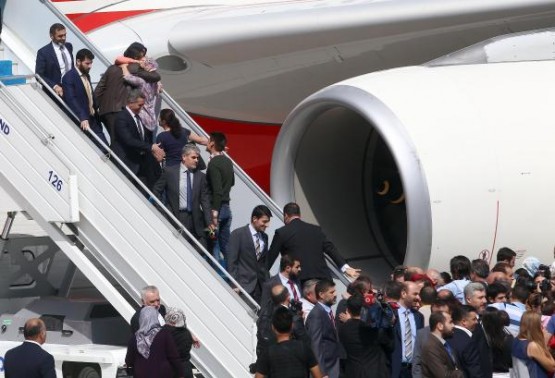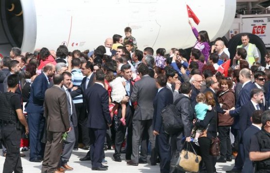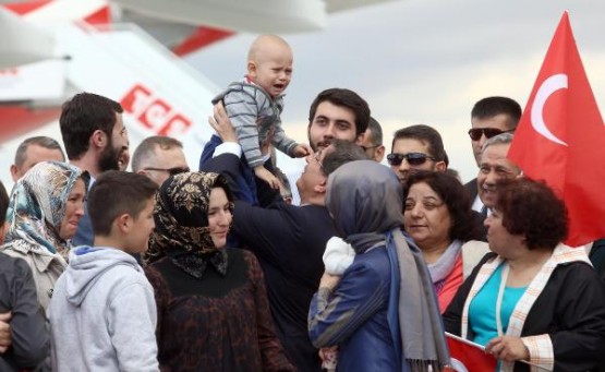 BAŞBAKAN Ahmet Davutoğlu, serbest kalan Türk rehineler ile birlikte Ankara Esenboğa Havalimanı'na gelerek açıklamalarla bulundu. Davutoğlu, "Provokasyon yapanlara seslenen Davutoğlu, "Bugün bir bayram günüdür. Sadece Musul'dan gelen değerli kardeşlerimiz ve onların aileleri için değil. Hakkari'den Edirne'ye Artvin'den Muğla'ya bütün bir milletimiz için bayram günüdür. 3 ayı aşkın bir zamandır gece ve gündüz onları hayal ettik. Rüyalarımıza girdiler" dedi.