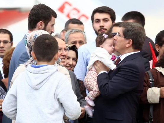 Başbakan Davutoğlu, şunları kaydetti: "Bu zaman zarfında ailelerimizi provoke etmek için çok çalışan oldu. Yüreğimize taş bastık. Dediler ki 'Bunlar seçim malzemesi olarak kullanılacak.' Dediler ki 'Bunlar cumhurbaşkanlığı seçimi ve sonrasındaki süreçler için değerlendirilecek.' 'Aslında gizli bir işbirliği var' dediler. Yüreğimize taş bastık. Ama şu manzara dünyaya ve o provokatörlere gösterdi ki bu devleti idare eden Türkiye Cumhuriyeti yetkilileri kendi vatandaşının bir tek saç telini bile dünyaya ve aleme değişmez. Onların bir tek saç teline zarar gelmesindense bütün makamları terk ederiz. Bütün mevkilerden fedakarlık ederiz.