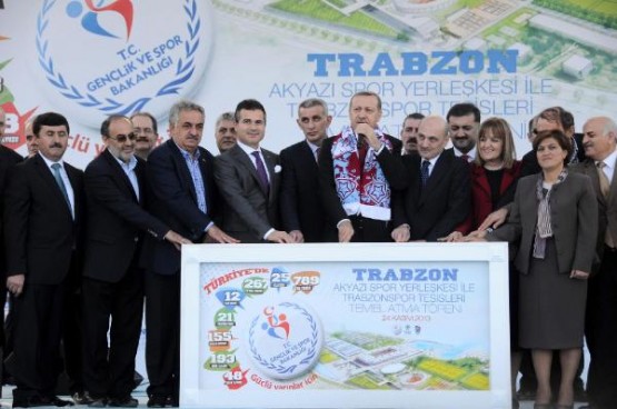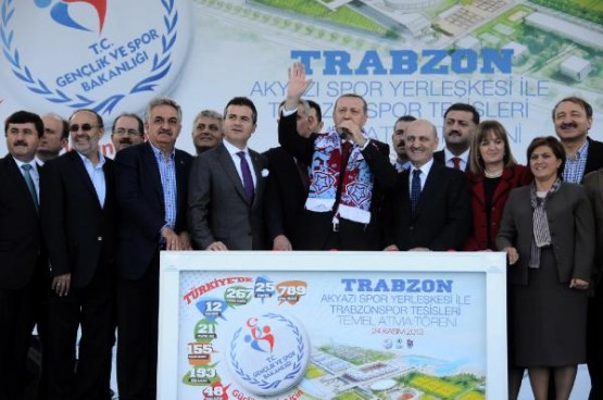 Başbakan Recep Tayyip Erdoğan, Trabzon’un Akyazı beldesindeki yeni spor kompleksinin temel atma törenine katıldı. Törene Başbakan Erdoğan’ın yanısıra Gıda Tarım ve Hayvancılık Bakanı Mehdi Eker, Gümrük ve Ticaret Bakanı Hayati Yazıcı, Çevre ve Şehircilik Bakanı Erdoğan Bayraktar, Gençlik ve Spor Bakanı Suat Kılıç ile spor adamları, milletvekilleri, sporcular ve yaklaşık 500 partili katıldı.
