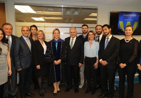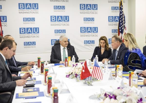 Başbakan Binali Yıldırım, Dışişleri Bakanı Mevlüt Çavuşoğlu, Enerji ve Tabii Kaynaklar Bakanı Berat Albayrak ve Türkiye’nin Washington Büyükelçisi Serdar Kılıç ile birlikte Bahçeşehir Üniversitesi (BAU) Washington Kampüsü’nü ziyaret etti. Başbakan Bahçeşehir Global Eğitim Ağı Yönetim Kurulu Başkanı Enver Yüce ile Bahçeşehir Uluslararası Üniversitesi Rektörü Sinem Vatanartıran’dan üniversite hakkında bilgi aldıktan sonra sınıfları gezerek öğrencilerle fotoğraf çektirdi.