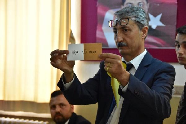 "Toplam oy 323, Evet 144, Hayır 175, geçersiz 4"