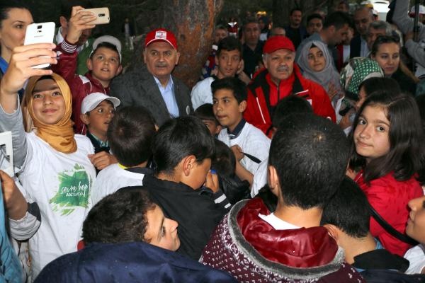 BAŞBAKAN Binali Yıldırım baba ocağı Erzincan’ın Refahiye İlçesi'ne bağlı Kayı Köyü'nde doğa yürüyüşüne katıldı. Başbakan Yıldırım çocuklarla birlikte katıldığı etkinlikte aniden bastıran yağmur nedeniyle yürüyüşü kısa tutmak zorunda kaldı.