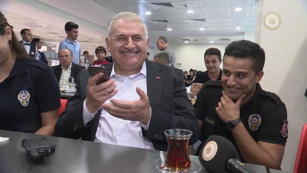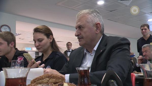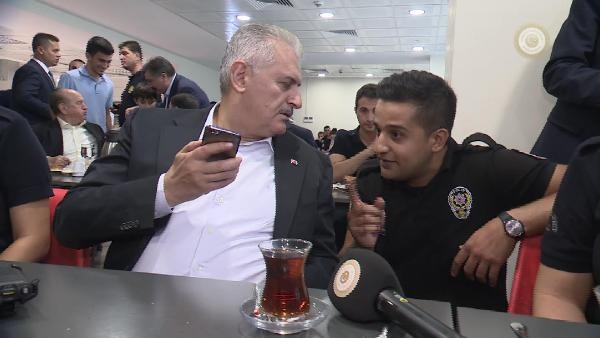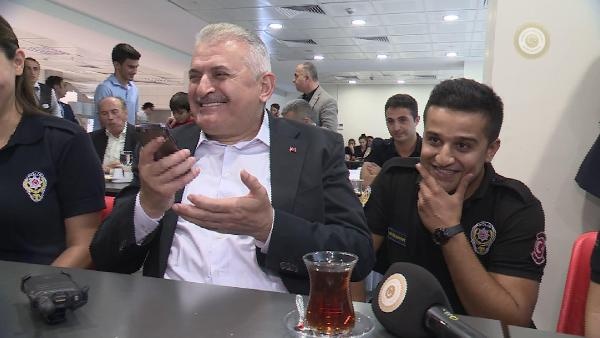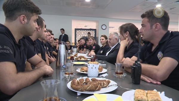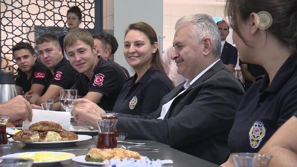 Girişte tören mangası ve çevik kuvvet şube müdürlüğü yetkilileri tarafından karşılanan Başbakan Yıldırım'ı içeride de kadın çevik kuvvet polisler çikolata ve kolonya ikramı ile karşıladı. Daha sonra Yıldırım, yerleşkede polislerle kahvaltı etti. Kahvaltı esnasında polislerle sohbet eden Başbakan Yıldırım, Muhammed Fatih isimli bir polisin eş adayının ailesini de aradı. Yıldırım telefonda eş adayı ile konuşarak "Hayır işlerinde acele etmek lazım. Bu sene düğün olursa katılacağım" dedi. Bu esnada masada bulunan polis memurlarının da sohbetten keyif alarak güldüğü görüldü.