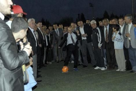 İmza töreni sonrası Bakan Şimşek ve Özak, penaltı atışı yaptı ve minik güreşçilerin kısa gösterisini izledi.