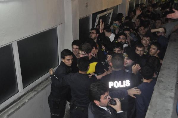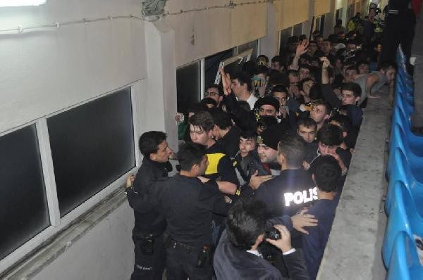 TÜRKİYE Kadınlar Basketbol Ligi 13’ncü hafta karşılaşmasında Edirne Belediyespor, kendi evinde Fenerbahçe’yi konuk ederken maçın bitimine 2 dakika kala taraftar arasında arbede çıktı. Polis ekipleri iki takım taraftarlarına da biber gazı ve cop kullanırken, karşılaşma salonun boşaltılmasıyla tamamlandı.