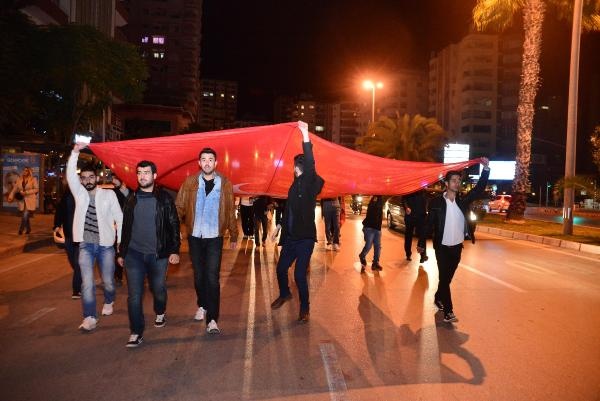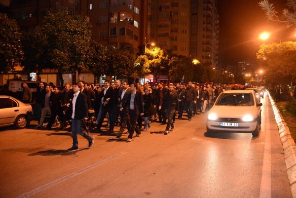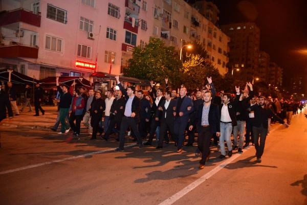 Merkez Seyhan İlçesi Sümer Mahallesi Gençlik Meydanı'nda saat 23.00 sıralarında toplanan 200 kişilik ülkücü grup, tekbir getirip Rusya ve Esad aleyhine slogan atarak yürümeye başladı.