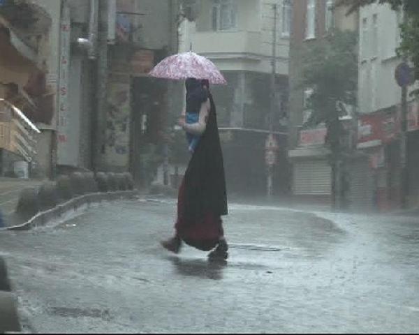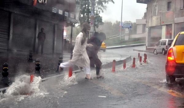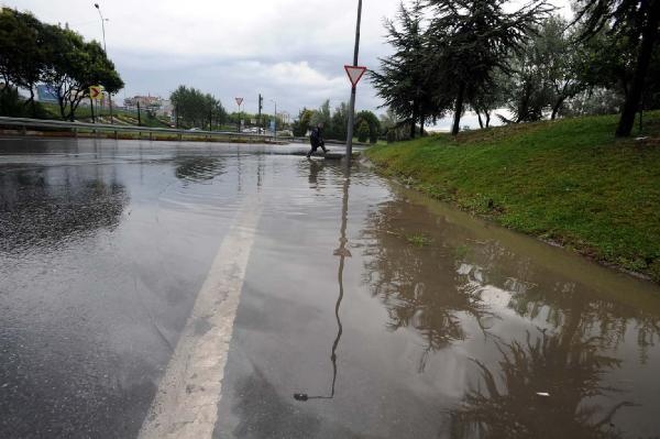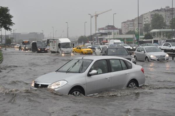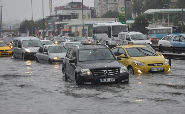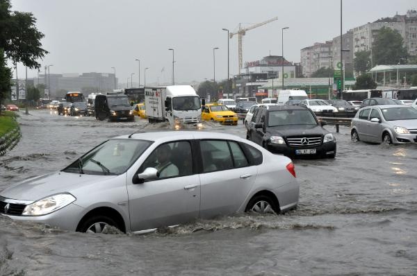 İstanbul'da saat 07.30 sıralarında aniden sağanak yağmur başladı. Yaklaşık yarım saat süren sağanak sokakları göle çevirdi, yollardan sel gitti.
