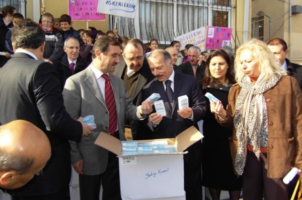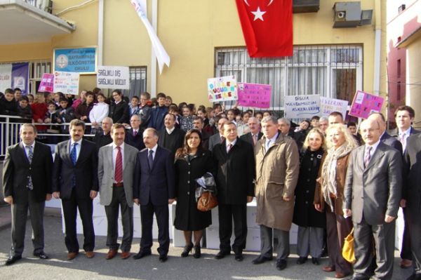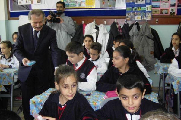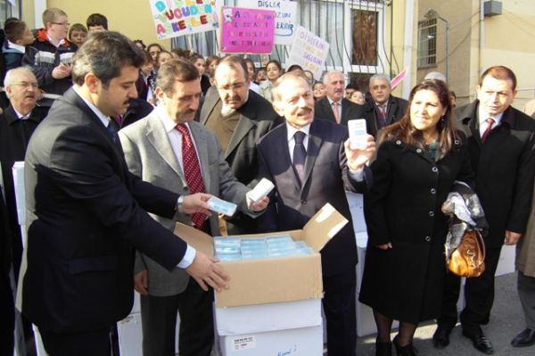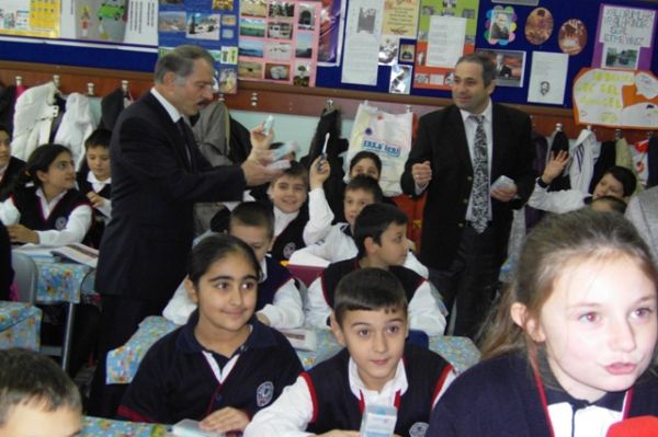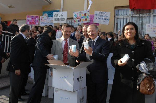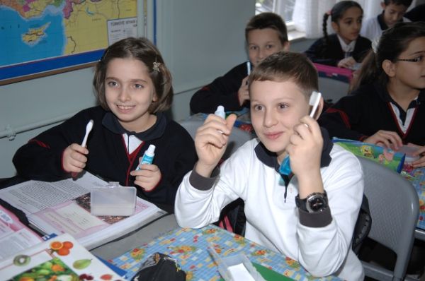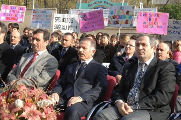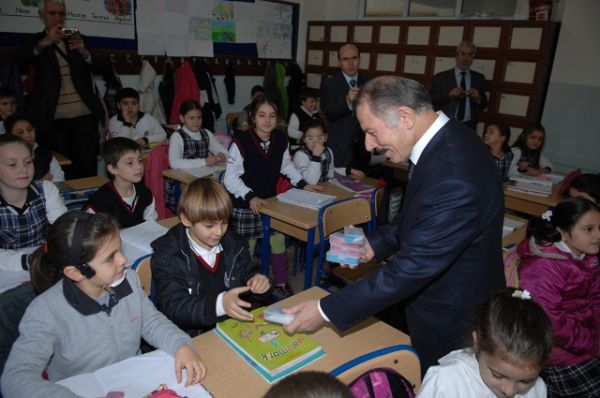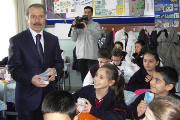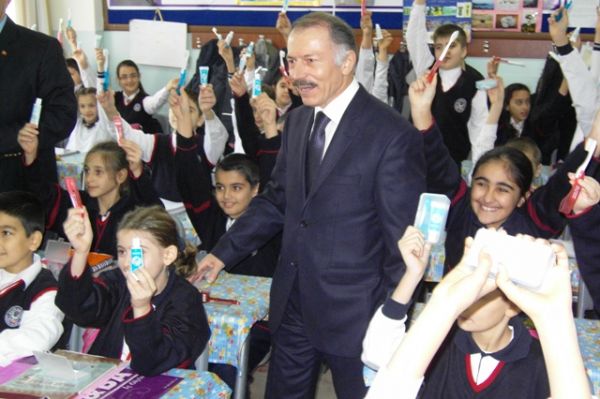 Konuşmaların ardından sınıflara girerek öğrencilerle sohbet eden Başkan Aydıner,diş bakımı konusunda çocuklardan söz alarak diş bakım setlerini hediye etti.