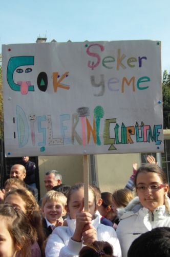 Asitli içeceklerden,çikolatalı ve bol şekerli gıdalardan uzak durmaya çalışacağız ve her ne olursa olsun bunları tükettiğiniz zaman da dişlerinizi fırçalamayı asla unutmayacağız çocuklar.Sizler ülkemizin geleceğisiniz.Çocuklar,sizler bayrampaşamızın geleceğisiniz,hepiniz birer yıldızsınız..Bizler de elimizden geldiği kadar sizlerin sağlıklı bir birey olması için çalışacağız.Sizlere dağıttığımız bu diş bakım setinizi yanınızdan ayırmamanızı istiyorum.Hepinize sağlıklı bir gelecek diliyorum ve hepinizi çok seviyorum’’dedi.