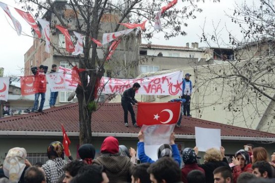 OKMEYDANI’nda çıkan olaylarda vurularak öldürülen Burak Can Karamanoğlu için yaklaşık 500 kişi, olay yerinde toplanarak protesto gösterisi yaptı. Polis grubun, Berkin Elvan’ın yaşadığı mahalleye geçmemesi için çevrede yoğun güvenlik önlemi aldı. Burak Can Karamanoğlu’nun fotoğraflarını taşıyan topluluk tekbir getirerek, “Burak Can ölmedi kalbimizde yaşıyor”, “Şehitler ölmez vatan bölünmez” sloganları attı. Bir süre olay yerinde slogan atan grup, daha sonra çevre sokaklarda slogan atarak yürüyüşe geçti. Polis çevrede yoğun güvenlik önlemi alıyor.