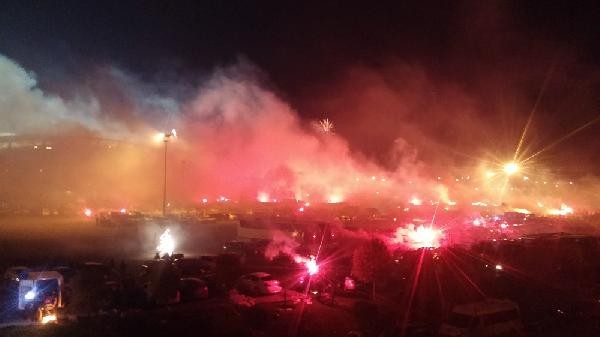 Atatürk Olimpiyat Stadı Doğu Tribünü önünde toplanan binlerce taraftar, Beşiktaş Kulübü'nün kuruluşunun 112. yıl dönümünü saat 19.03'te meşaleler yakıp, tezahüratlar yaparak kutladı. Kutlamalar çerçevesinde havai fişek gösterisi de yapıldı.