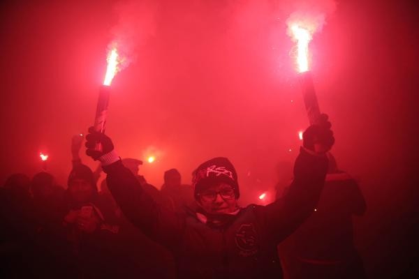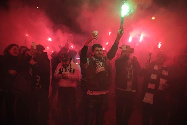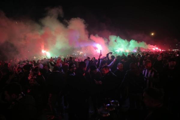 BEŞİKTAŞLI taraftarlar, Club Brugge ile oynanacak UEFA Avrupa Ligi 3. tur rövanş maçı öncesi siyah beyazlı kulübün kuruluşunun 112. yıl dönümünü kutladı.
