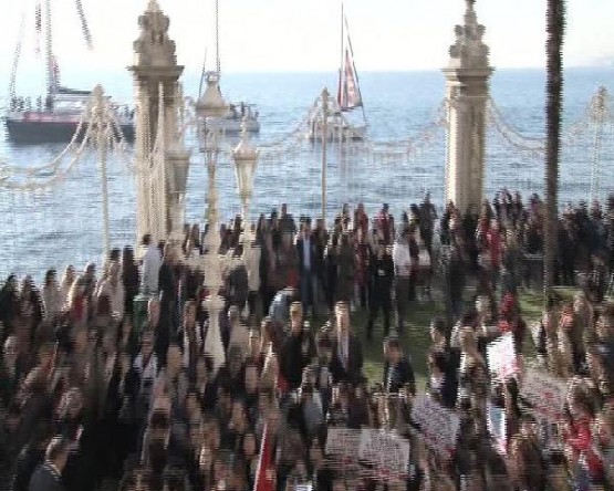 Burada kurulan platform üzerinde yapılan konuşmaların ardından Atatürk’ün sevdiği şarkılar çalındı. Anma töreninin bitmesinden sonrada saray girişindeki yoğunluk saatlerce devam etti. Her 10 Kasım’da Dolmabahçe açıklarında bekleyen askeri gemi yine anma sırasında açıkta bekletildi.
