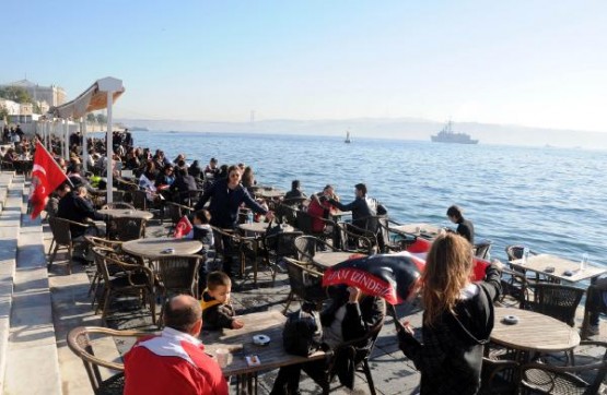 Atatürk’ü anmak için, ellerine Türk bayrağı alan İstanbullular Dolmabahçe’ye koştu. Kalabalığın girişte kontrolden geçirilerek içeri alınması nedeniyle uzun kuyruklar oluştu, kalabalığın sayısı her geçen saat daha da arttı. Ellerinde Türk bayrakları kadını, yaşlısı, çocuğu, okul öğrencisi, çeşitli sivil toplum örgütü üyesi binlerce kişi Atatürk’ü öldüğü saatte, öldüğü yatağın başında anmak için beklemeye başladı.