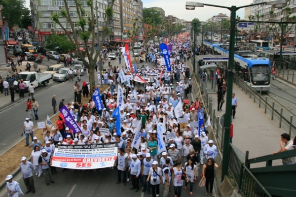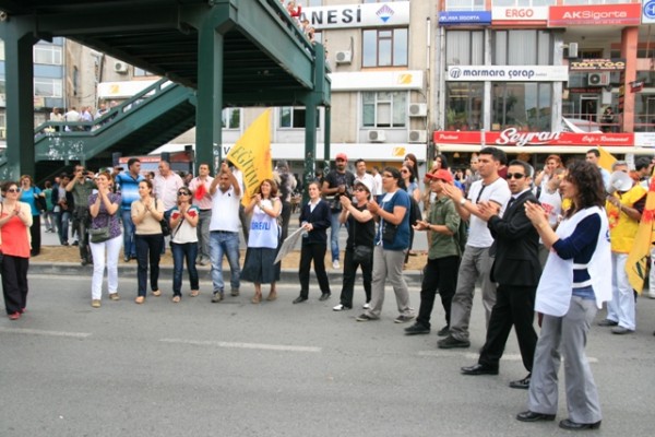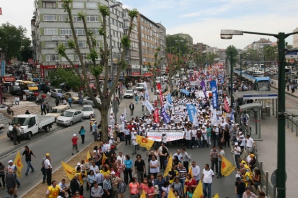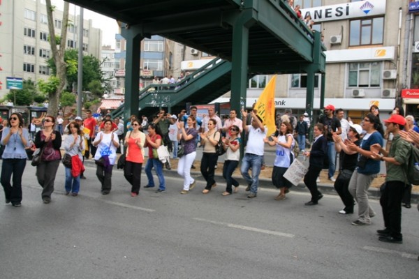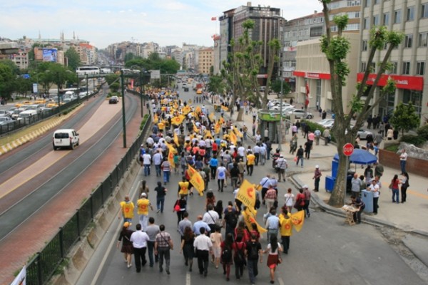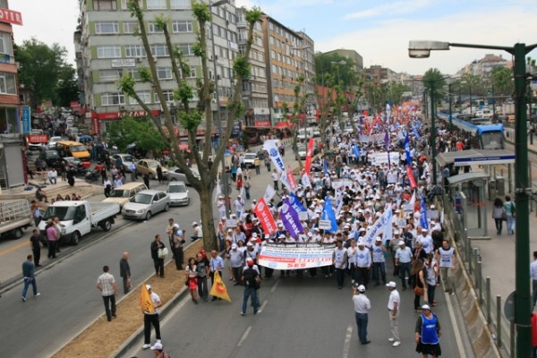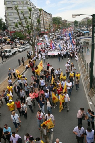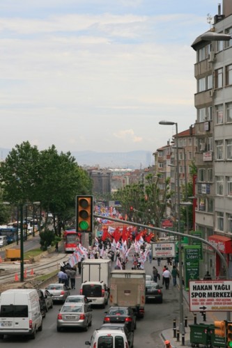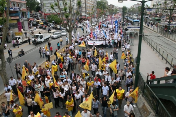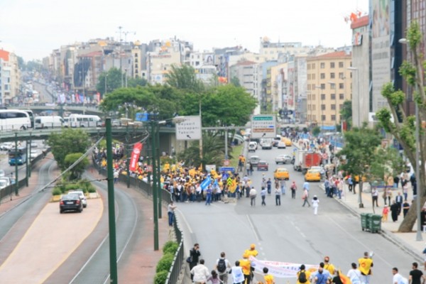 Sayıları 10 bini bulan yürüyüşçüler Millet Caddesini trafiğe kapattı. Yürüyüş polis kontrolünde yapılırken, sık sık hükümet aleyhinde sloganlar atıldı.