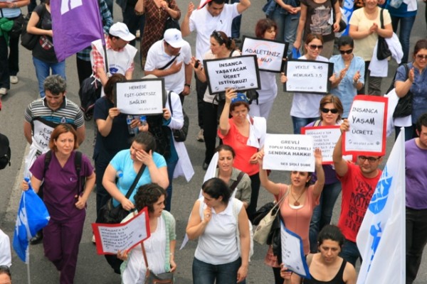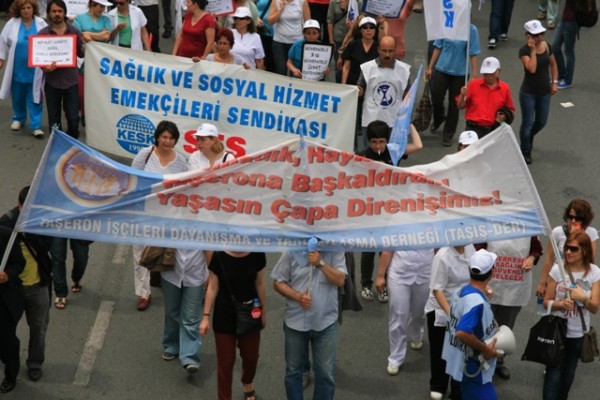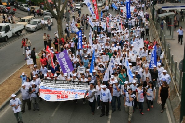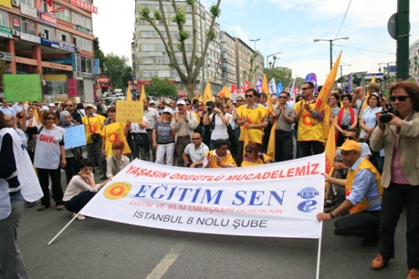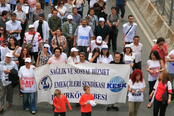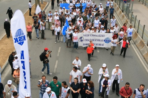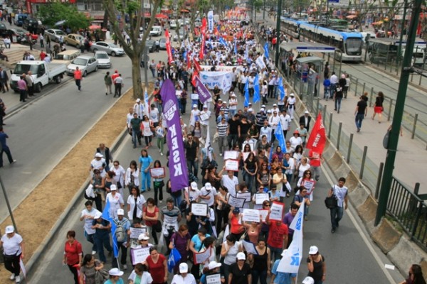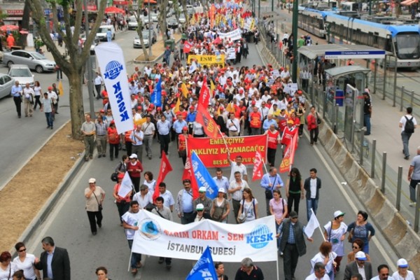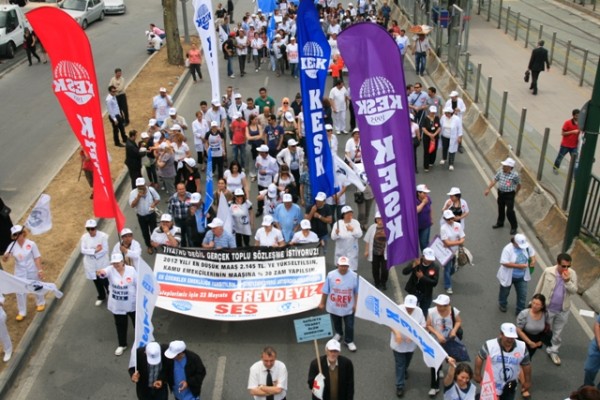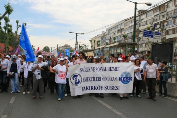 İstanbul’da KESK’e bağlı sendikalar Çapa Tıp Fakültesi önünde toplanıp, Beyazıt Meydanı’na yürüdü.