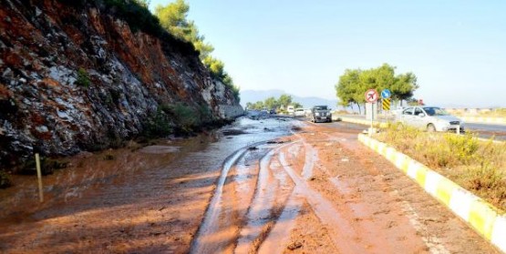 Yolun yaklaşık 500 metrelik bölümü çamurla kaplandı, trafiğe kapatıldı. Bölünmüş yolda trafik, Milas-Bodrum istikametinden gidiş geliş olarak verildi. Bazı kesimlerde denize ulaşın çamurlu su kirliliğe neden oldu.